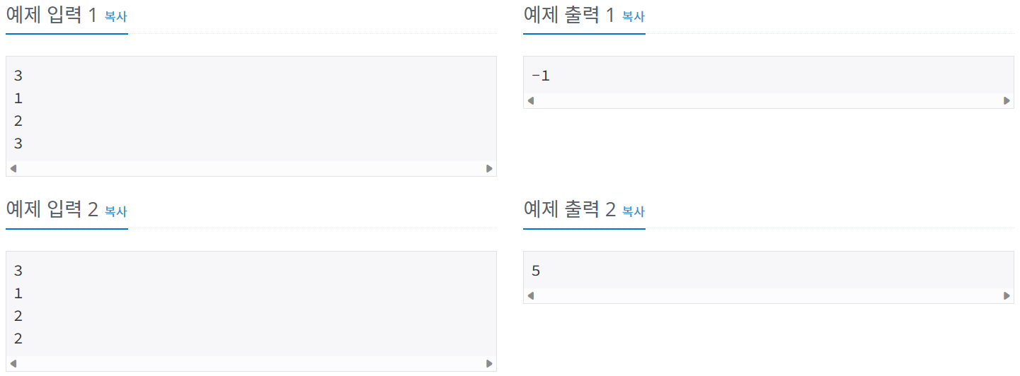 print(-1)'Python > 백준 문제풀이' 카테고리의 다른 글