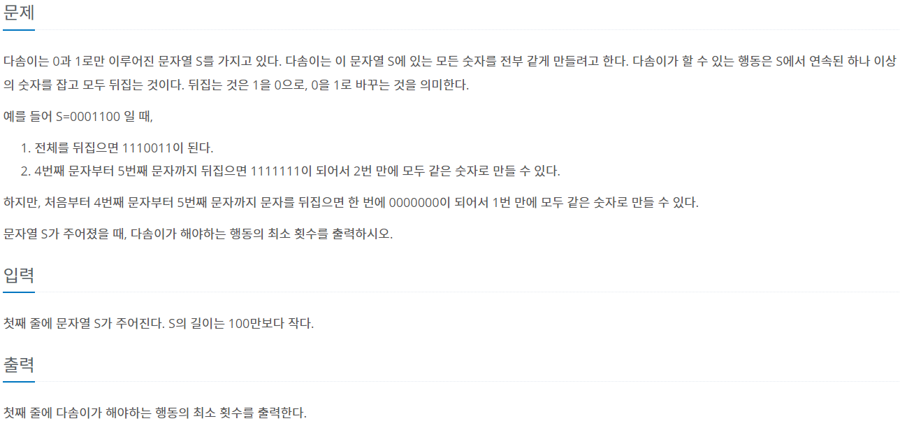 [백준 1439] 뒤집기 파이썬 문제 풀이 본문