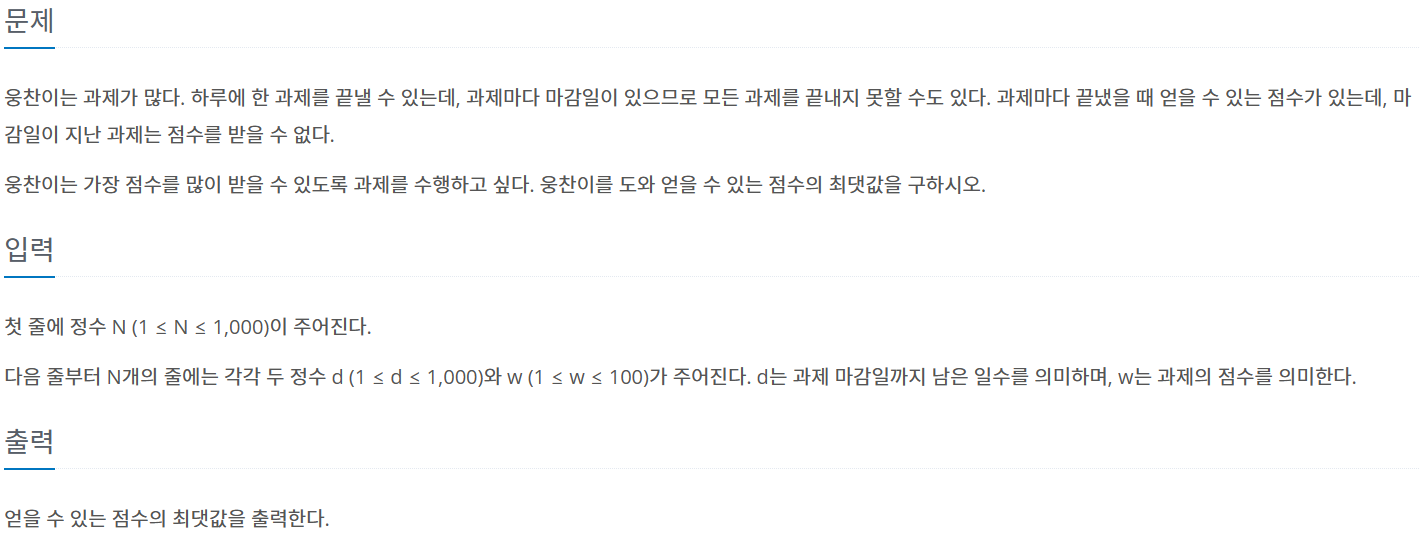 [백준 13904] 과제 파이썬 문제 풀이 본문