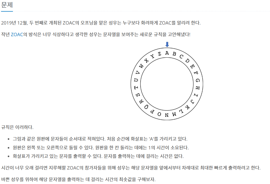 문자를 하나씩 가져와서 왼쪽으로 돌려야 최소 값이 나오는지 오른쪽으로 돌려야 최소가 나오는지를 계산한다.