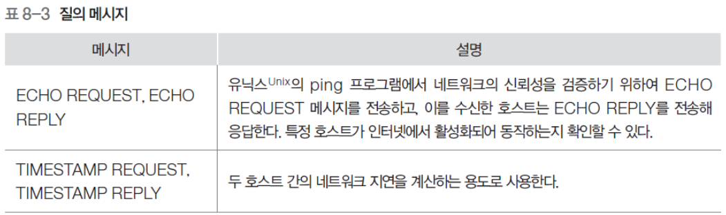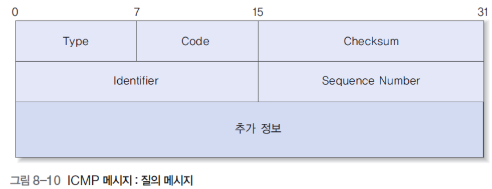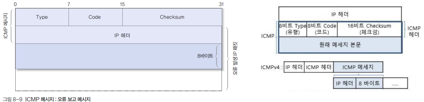 - 오류 원인을 제공한 IP패킷의 헤더와 이어지는 8바이트의 정보가 오류 보고 메시지에 포함됨
