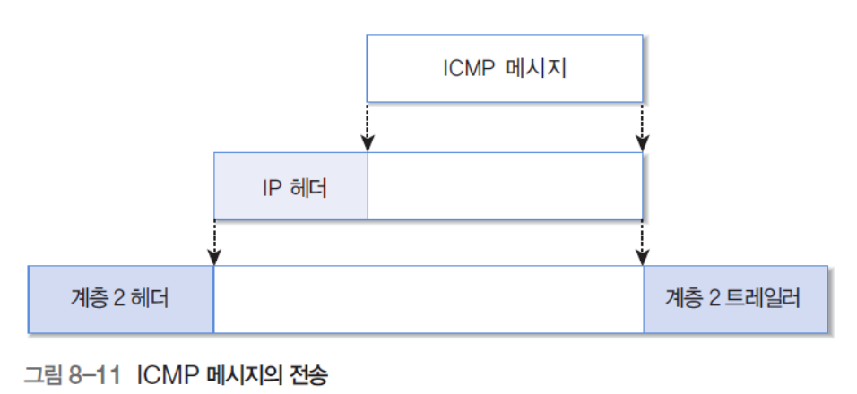 - ICMP 메시지는 IP프로토콜에 캡슐화되어 전송