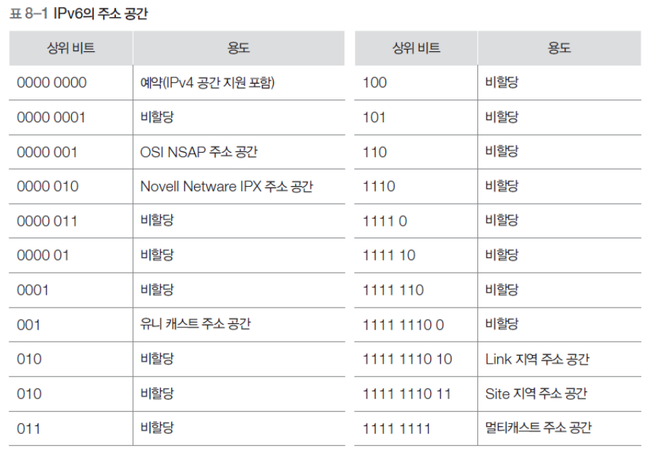 IPv6의 주소 공간은 128비트로 크게 확장되었기 때문에 주소 공간을 사용하는 방법이 IPv4와 다르다.