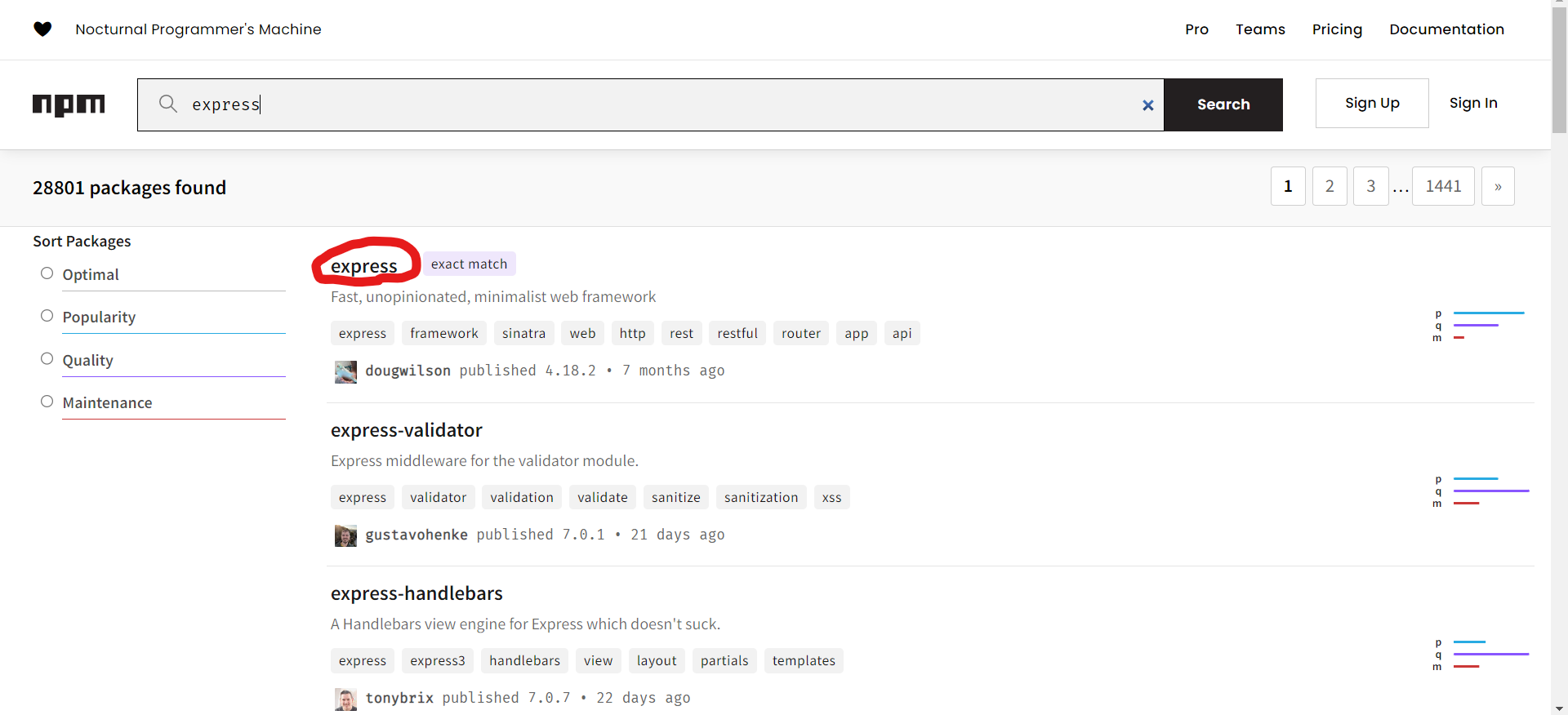 구글 - npm - 검색창에 express - 위에 있는 페이지 선택 - 코드 vscode에 복붙