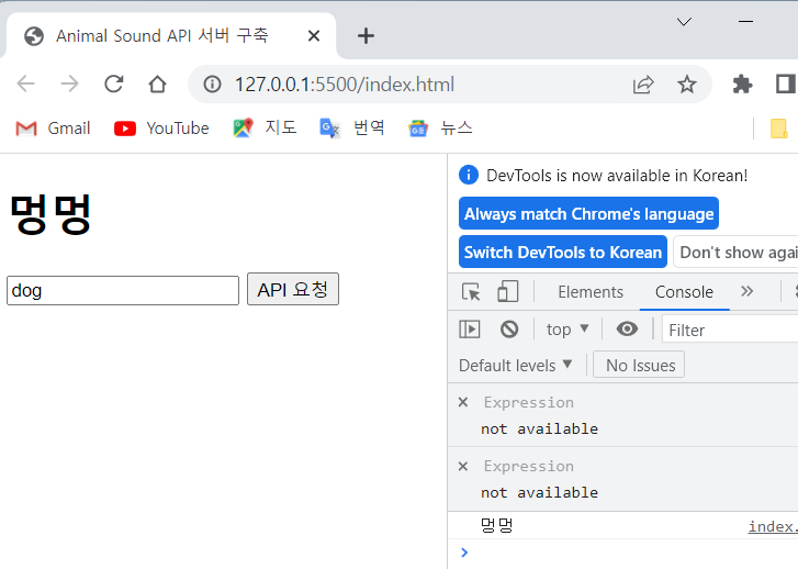 document.getElementById('sound').innerHTML = data.sound//결과를 받아서 h1태그에 넣어주겠다.